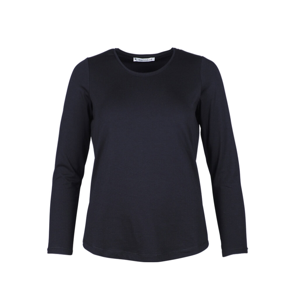 Mansted clothing Ulrica Shirt langarm black Ein schönes langärmeliges Shirt mit Rundhalsausschnitt. Dieses Hemd ist leicht tailliert und eignet sich als Basishemd. Mansted-Kleidung ist bekannt für ihre Qualität, gute Passform und schöne Farben. Ein Kleidungsstück, das Sie viele Jahre lang mit Freude tragen werden. Mansted stellt seine Kleidung aus natürlichen Materialien her. Jedes Kleidungsstück wird mit größter Sorgfalt hergestellt. Das spiegelt sich auch in der schönen Verarbeitung wider. Designer: Charlotte Mansted. Wenn Sie eine Beratung wünschen, wenden Sie sich bitte an uns, wir helfen Ihnen gerne bei der Wahl Ihrer Größe. Die Passform: Referenzgröße = Größe L Schultern: tailliert Ärmel: tailliert Ärmellänge: Langarm Oberweite: Passend. M/ 90 cm. L/ 96 cm. XL/ 102 cm. XXL/ 108 cm. Hüftbreite: Anprobe. Gesamtlänge Mitte Rücken in Größe L: 62 cm. Passform: Normale Größe L Material: 48% Öko-Baumwolle 47% Modal 5% Lycra Größe: M - XXL