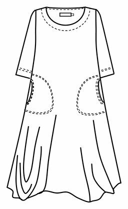 The long Elsa dress features a fitted top and a flared hem. The hem has wrap-style pleats on both sides. The dress also has ¾ length sleeves and pockets on both sides. The material is a pleasantly sof Lees meer..