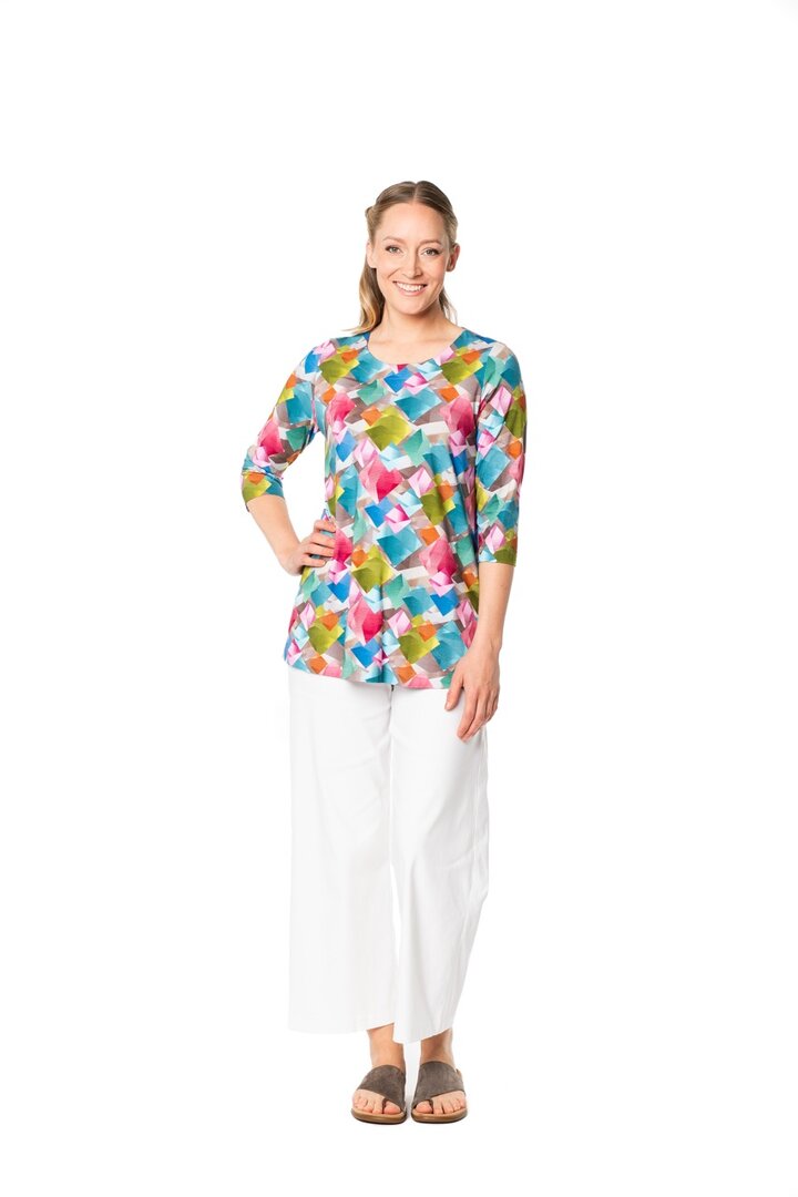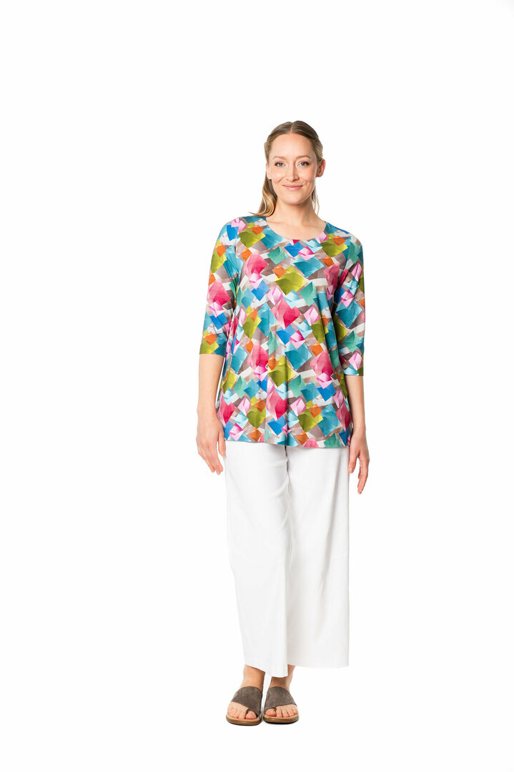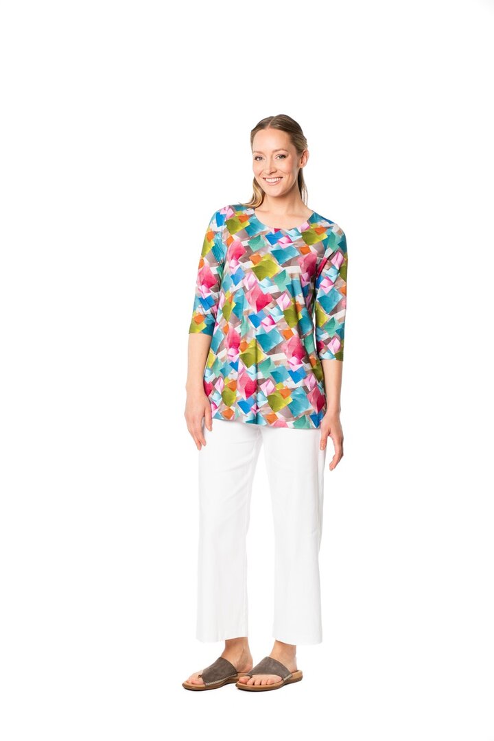 Alma est la tunique basique la plus petite d'AINO. Elle présente une coupe ajustée, un ourlet légèrement évasé, un col rond et des manches ¾. Elle est dotée de poches pratiques des deux côtés. Le tissu est un jersey de viscose agréablement doux et fluide.