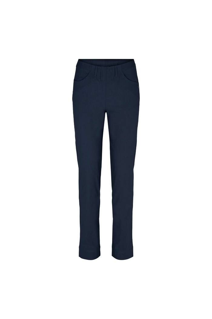 Model: 29714 Pasvorm: Regular Lengte: 4/4 Materiaal: 74% EcoVero™ viscose, 23% polyamide, 3% elastaan Kleur: 49970 blauw Normale pasvorm met elastiek in de taille Zakken en riem lus Lees meer..