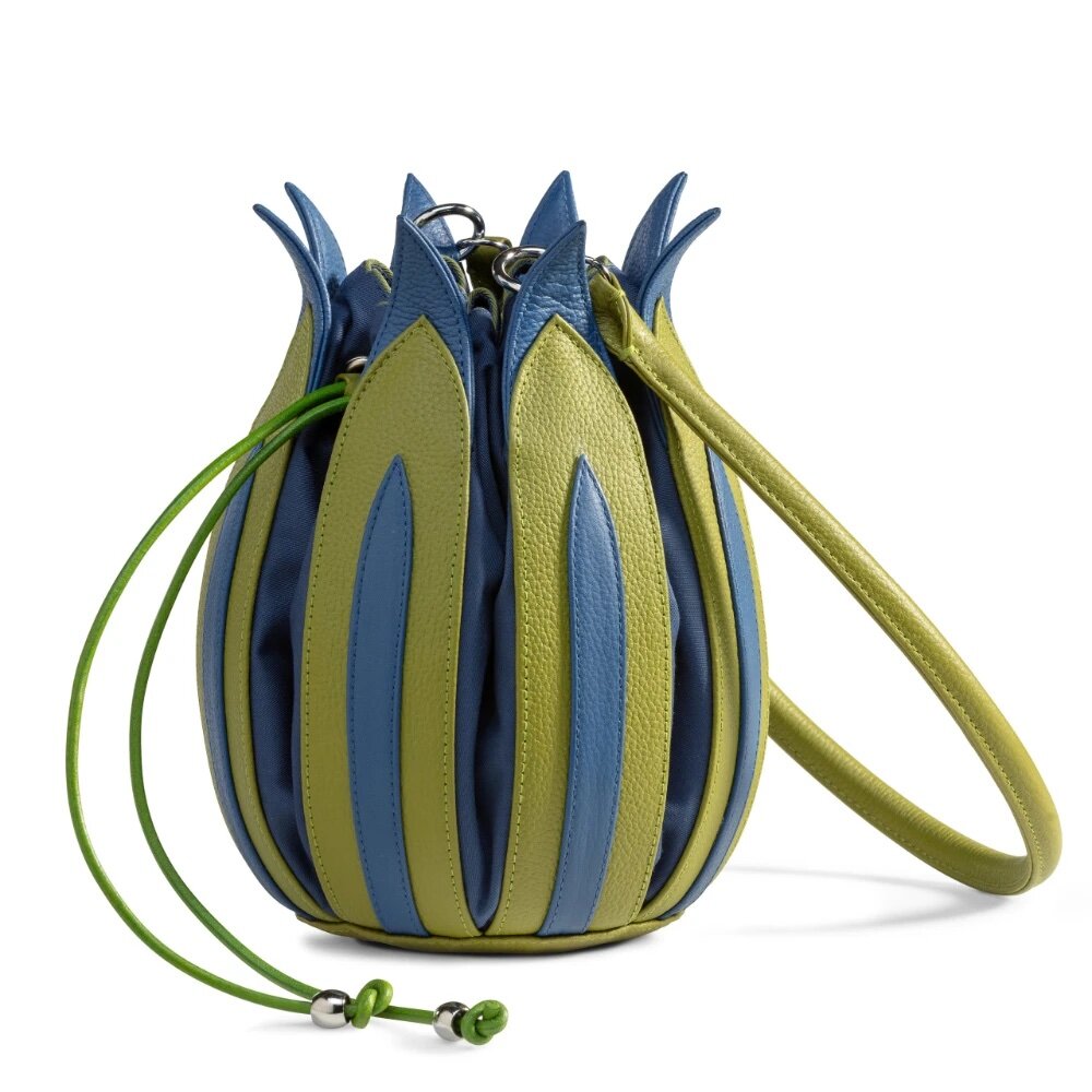 Voel je als de muze van een schilder met deze blauwe en lime Rembrandt tulp handtas. De tassen zijn duurzaam gemaakt op Bali en geweven van chroomvrij, plantaardig gelooid leer. De Rembrandt tas hee Lees meer..